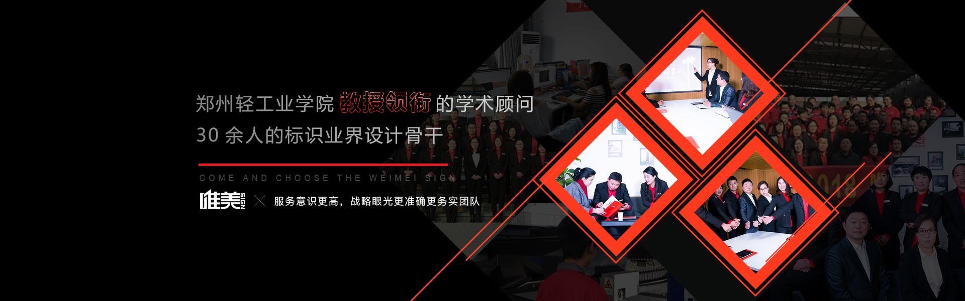 鄭州唯美標(biāo)識(shí)設(shè)計(jì)制作有限公司是一家專注從事地產(chǎn)住宅、商業(yè)廣場、商務(wù)辦公、醫(yī)院系統(tǒng)、學(xué)校文化、工業(yè)園區(qū)、市政交通、旅游景區(qū)、酒店餐飲、銀行金融、城市環(huán)境標(biāo)識(shí)標(biāo)牌系統(tǒng)規(guī)劃、設(shè)計(jì)、制作、...